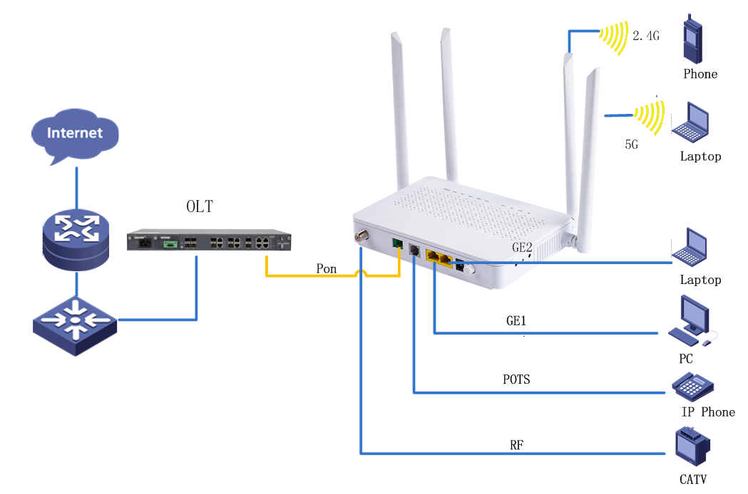 Support fast transmission of hardware NAT Hardware Specifications         interface: 1* G/EPON+2*GE+2.4G/5.8G WLAN+1*RF+1*FXS